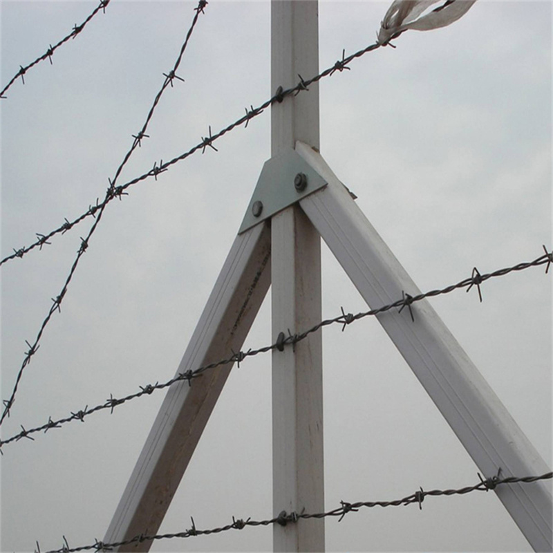 刺絲隔離網的主要材質有電鍍鋅絲,熱鍍鋅絲和PVC包塑絲集中,絲徑包括兩部分,主絲絲徑和刺絲絲徑所以通常描述絲徑都是用BWG12*BWG12,BWG12*BWG14,BWG14*BWG14,BWG14*BWG16等幾種規格。刺距多采用8cm,10cm和12cm這幾種。刺鐵絲隔離柵的立柱也從以前的鋼管或槽鋼立柱升級到了GRC復合立柱,立柱的高度通常會選擇1.85m,1.95m,2.00m等,立柱的規格有5*6cm和6*6cm等。