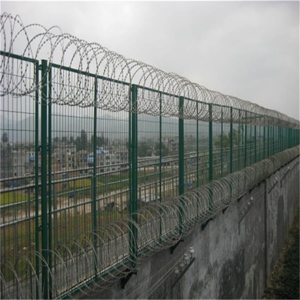 監(jiān)獄圍墻加高網(wǎng)通常采用鋼絲直徑為5mm、6mm、6,5mm,網(wǎng)孔采用50mm*100mm、50mm*50mm、50mm*200mm、50mm*150mm, 組成結(jié)構(gòu):首先把網(wǎng)片焊接在鐵管框架上,框架是方管或者圓管焊接成的框架結(jié)構(gòu),在框架上焊接用于個(gè)立柱連接的連接板,用防盜螺栓與立柱連接。為了保證網(wǎng)片的防拆卸性能,網(wǎng)片連接方式采用特制防盜緊扣件,有效防止人為的破壞性拆卸。