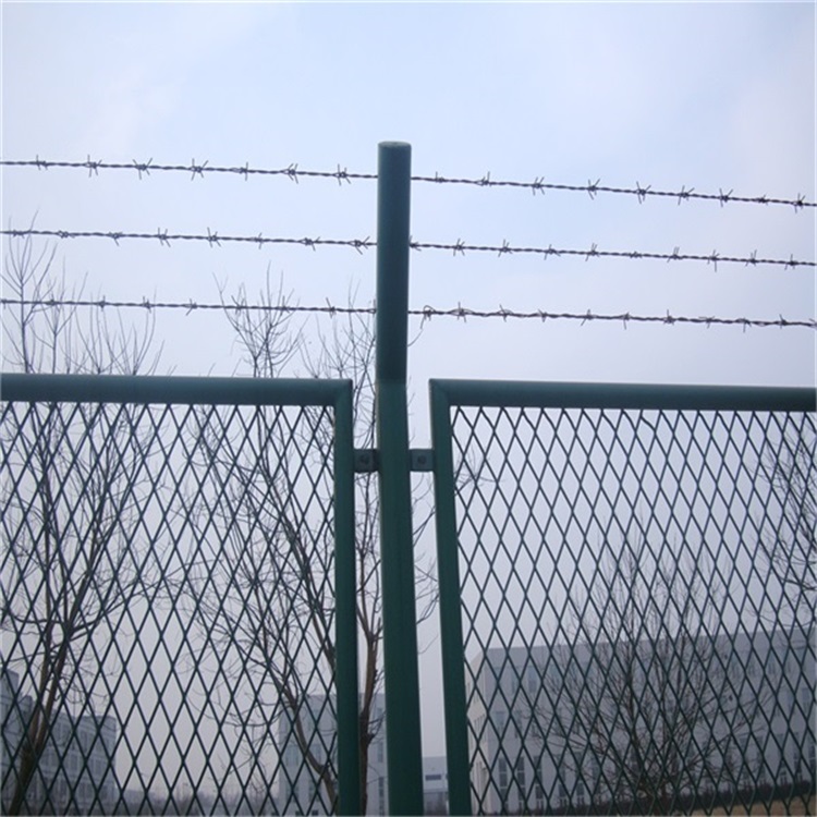 廠區圍墻刺絲護欄網,顧名思義是護欄網頂部帶刺絲也就是刺繩,增加防護級別,防攀爬,防盜,刺絲護欄網還可用于海關圍欄,保稅區圍欄,保護地護欄,河道水庫圍欄等等,由于是特殊樣式,下面艾瑞帶領大家認識一下這種防護性很好的刺絲圍墻護欄網。