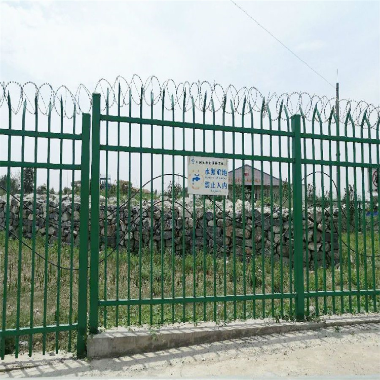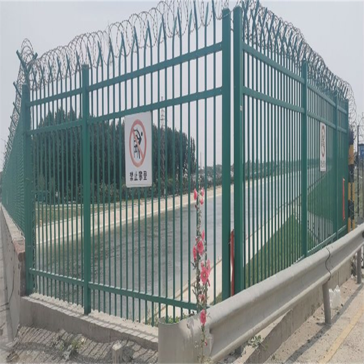 柵欄網片欄柵網片為帶尖彎頭鋅鋼型隔離網,由橫桿、中間立柱和弧線槍尖組成。