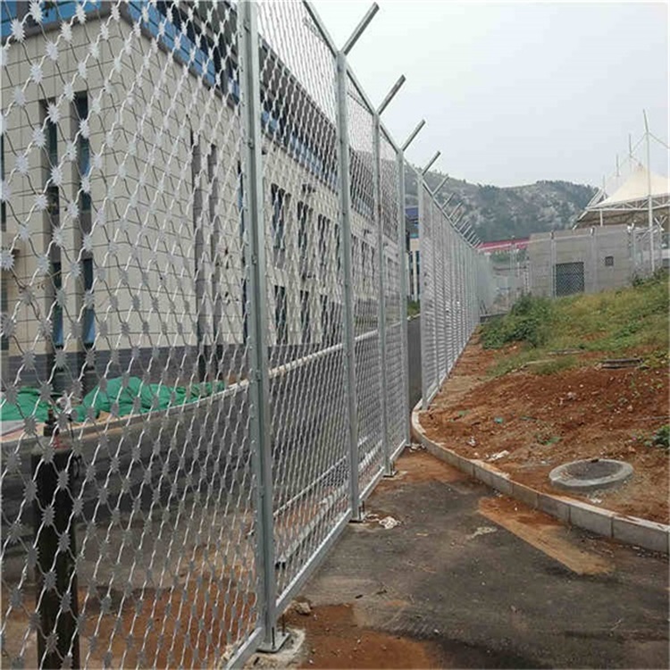 監獄梅花刺隔離網一般用于監獄大門,探監門,人員通道兩邊的隔離網,由于其成本造價高,所以還沒有廣泛替代焊接式隔離網。