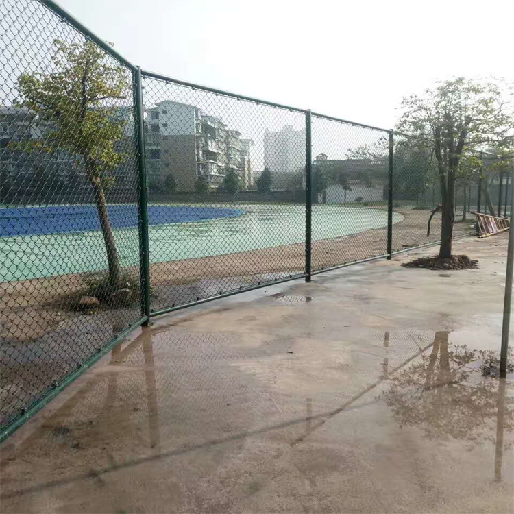 公園體育場地圍網網高4米四周周長108米長方形,菱形編織網采用包塑鍍鋅鋼絲,線徑4mm網孔50x50網高4000mm,四邊用扁鐵穿壓固定在立柱上面,或者四周框架用鋼筋條代替,穿插在網片四周,再固定在立柱上;立柱采用75x3.0mmx4000mm圓管,上中下橫桿60x2.0mm,法蘭底盤200mmx200mmx5mm厚。浸塑處理。邊門1個尺寸2000mmx1900mm,網面與圍網一致.這樣的造價比較低用料厚實,美觀,實用。