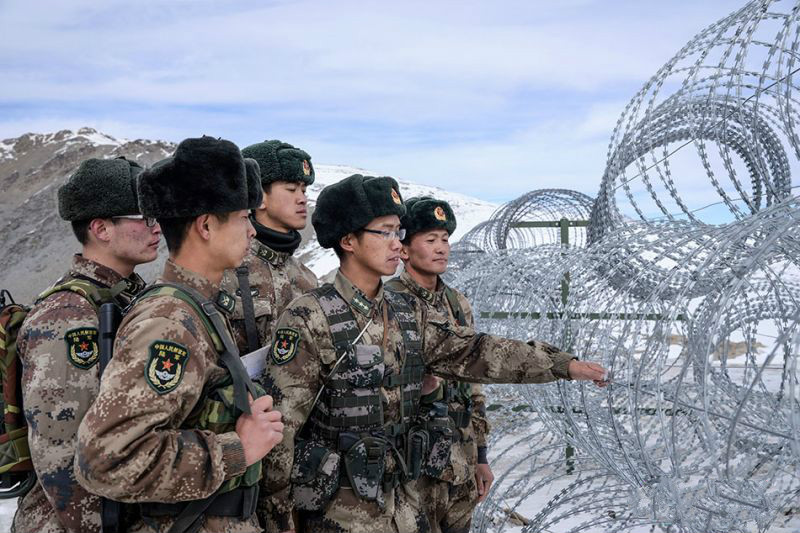 邊境鐵絲防護網采用刺絲滾籠+刺繩護欄網,邊境刺絲滾籠采用刀片刺繩繞圈后相臨兩圈每隔120°用刺絲連接卡固定,張開后形成蛇腹網狀;閉合后刀片刺繩圈徑為50cm,張開后每交叉安裝間距20cm,直徑不小于45cm[交貨時,刺絲滾網(籠)成品應為按此條要求用刺絲連接卡固定好的成籠。刀片刺繩由沖切鋼板采用機械壓軋在鋼絲上成型,刀刺寬度22mm,兩刃垂直間距15mm,刀刺縱向間距34mm,芯絲直徑為2.5mm,刀片采用厚度0.5mm的Q195鋼板沖切制作,芯絲由HPB300∮6.5mm高線鋼絲冷拔加工。