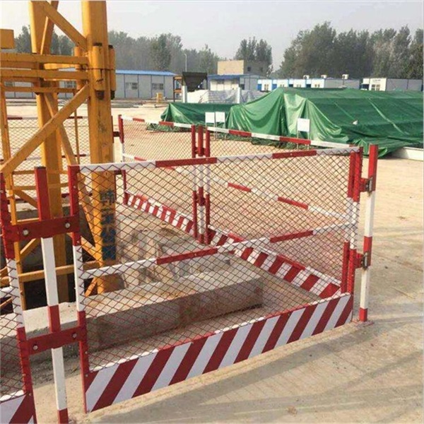 基坑臨邊防護欄由防護網(wǎng)片和立柱組成。基坑圍擋護欄防護網(wǎng)片由2cm×4cm方管焊接組成,單片尺寸1.1米×1.7米,兩端設(shè)有跨耳用Φ10螺栓與立柱連接固定,跨耳與上下邊緣距離為15cm。立柱采用8cm方管 高度1.3m,底部有法蘭(8mm×15cm×15cm鋼板)每個法蘭盤設(shè)4個螺栓孔、頂部封閉,與地面用Φ14膨脹螺栓固定。網(wǎng)片設(shè)計為黃色、立柱為紅色,均為噴繪,以達到紅白相間的警示效果。網(wǎng)片網(wǎng)格為50*50mm,鋼絲直徑為3.5mm。