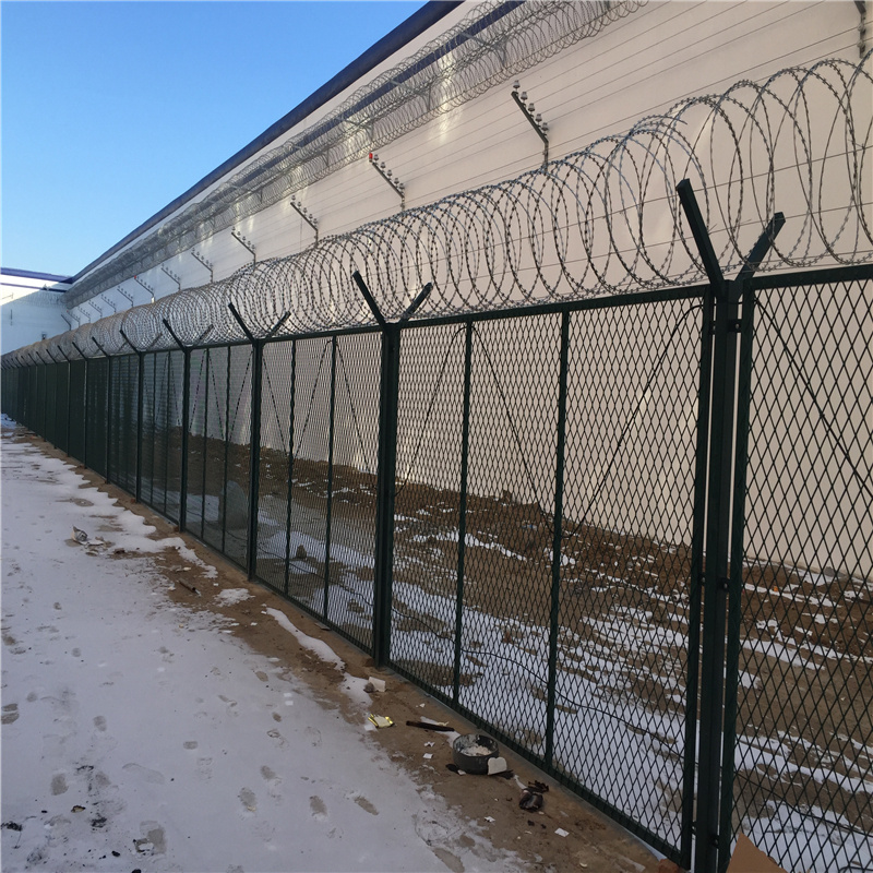 部隊訓練基地圍欄網為了提高訓練效率和質量需要一個全封閉的場所。這種場區圍欄網需要措配使用蛇腹形刀刺網形成一段安全防御護網。下面的圍欄網使用強度好的鋼絲焊接,頂部再搭配刀刺網為軍人訓練營造一個好的封閉環境,是由V型支架立柱增強型焊接片網,平安防匪件和熱鍍鋅刀片刺籠構成強度和安全性級別很高,被遍及用于機場,軍事等場所。因為具有寧靜性高、防攀爬效果好,網片毗鄰特制SBS緊扣件, 有效防止人為的損壞性拆卸,橫向四道折彎增強筋,使網面強度明顯。