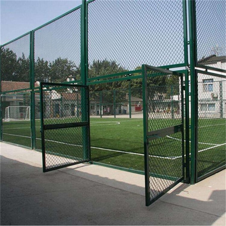 2.通道門應足夠大,以便維護球場的設備進入。通道門應置于適當的位置,以免影響打球。一般門寬2米、高2米或寬1米、高2米。圍網更好采用包塑的鐵絲網,網眼更大面積應為50毫米×50毫米(或45×45毫米),圍網的固定件不能有銳利的邊沿。