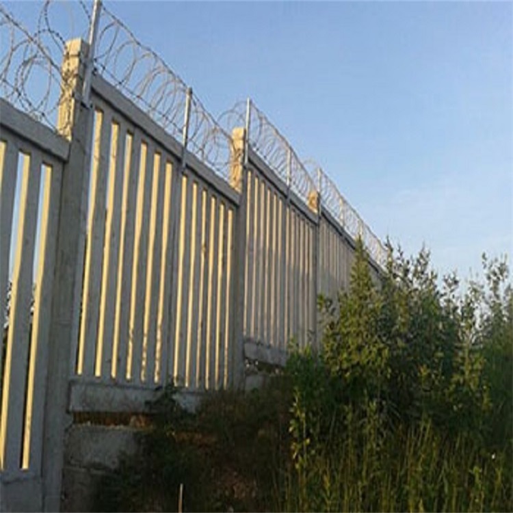 刺絲滾籠產品應用:鐵路柵欄一改往日焊接鋼絲網柵欄、刺絲網柵欄等產品,改為防御性更強、壽命更長久的:鋼筋混凝土柵欄+0.5米高刺絲滾籠的防護柵欄