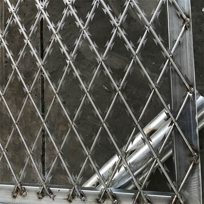 監獄刀刺鋼網墻(刀刺焊接隔離網)是一種全新的監獄隔離網形式,監獄刀刺鋼網墻又名刀片刺繩隔離網、刀刺隔離網。該產品具有嚇阻效果好.美觀.施工便利.經濟實用等優異特點。網格中布滿刀刺是該產品的特點,可以更好的起到防御恐嚇作用。