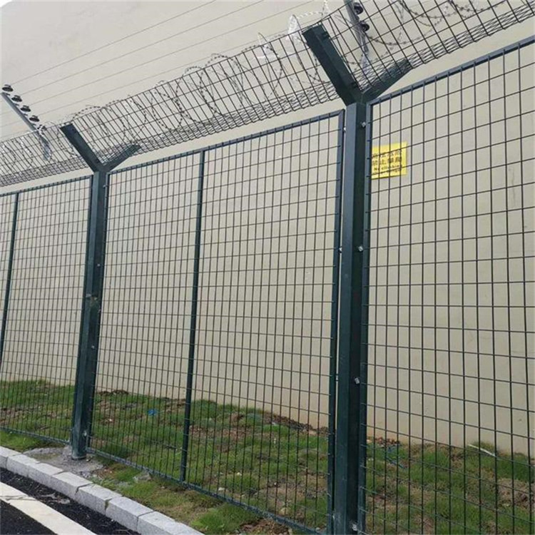 3、防攀爬v型網(wǎng)與蛇腹形刀刺網(wǎng) 防攀爬是監(jiān)獄鋼網(wǎng)墻必須必備的特點,我們一般會在監(jiān)獄鋼網(wǎng)墻頂端架設蛇腹形刀刺網(wǎng)。現(xiàn)在監(jiān)獄架設的蛇腹形刀刺網(wǎng)型號為BTO-22型號,根據(jù)規(guī)定不同的地方架設的刀刺網(wǎng)圈經(jīng)不一樣,一般有φ50cm、φ60cm、φ80cm。 固定蛇腹形刀刺網(wǎng),需要在鋼網(wǎng)墻頂端行成一個V字型,一般有鋼筋焊接V型網(wǎng)和拉線構(gòu)成V型。架設的時候采用特定的卡扣、按照規(guī)定的間距進行安裝就行。