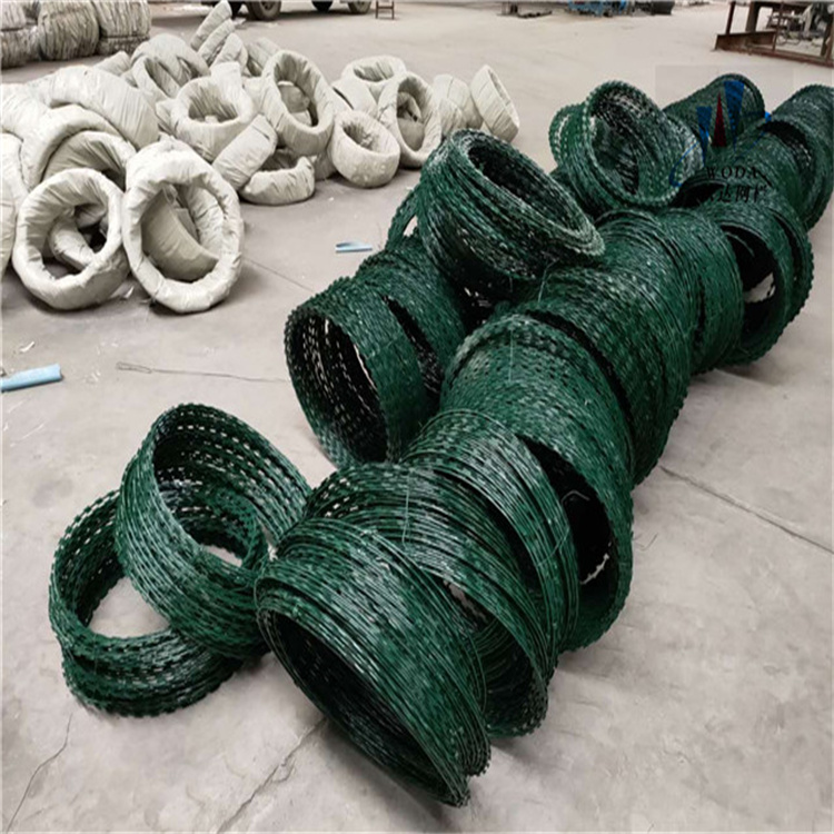 刀片刺繩的表面處理可以分為兩種,一種是冷鍍,一種是熱鍍。表面處理方式的特殊性賦予了它防腐、防老化、防爆曬、防惡劣氣候等特點(diǎn)。刺繩圍欄網(wǎng)的分類(lèi)主要是依據(jù)安裝方法的不同而設(shè)定的。依據(jù)安裝方法的不同可以分為:(蛇腹式)螺旋式刀片刺繩,直線型刀片刺繩,平板式刀片刺繩,刀片刺繩接網(wǎng)等。