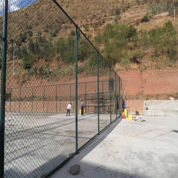 學校訓練場圍欄網, 可以選擇用菱形勾花網,也就是球場圍欄網樣式,主要劃分區域為學生提供一個安靜獨立的場地,網身富有張力,可以倚靠休息,造型也美觀實用。網孔為: 50*50mm、60*60mm,橫梁選用60mm圓管,立柱選用75mm圓管。 高度可從2.5米到6米。顏色一般為墨綠色。