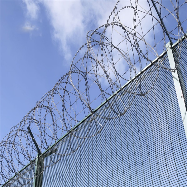 監獄隔離網加裝刀刺網的作用:監獄隔離網加裝刀刺網是用V型支架立柱,加強型焊接片網,安全防盜連接件和熱鍍鋅刀片刺籠組成,強度和安全防御性級別很高。近年來,被廣泛應用在監獄,軍事基地等高安全場所。在監獄隔離網頂部加裝刀刺網, 是一種發展起來的防護、隔離能力較強的新型隔離網產品,提高了監獄看守所等高防護場地的防御能力。