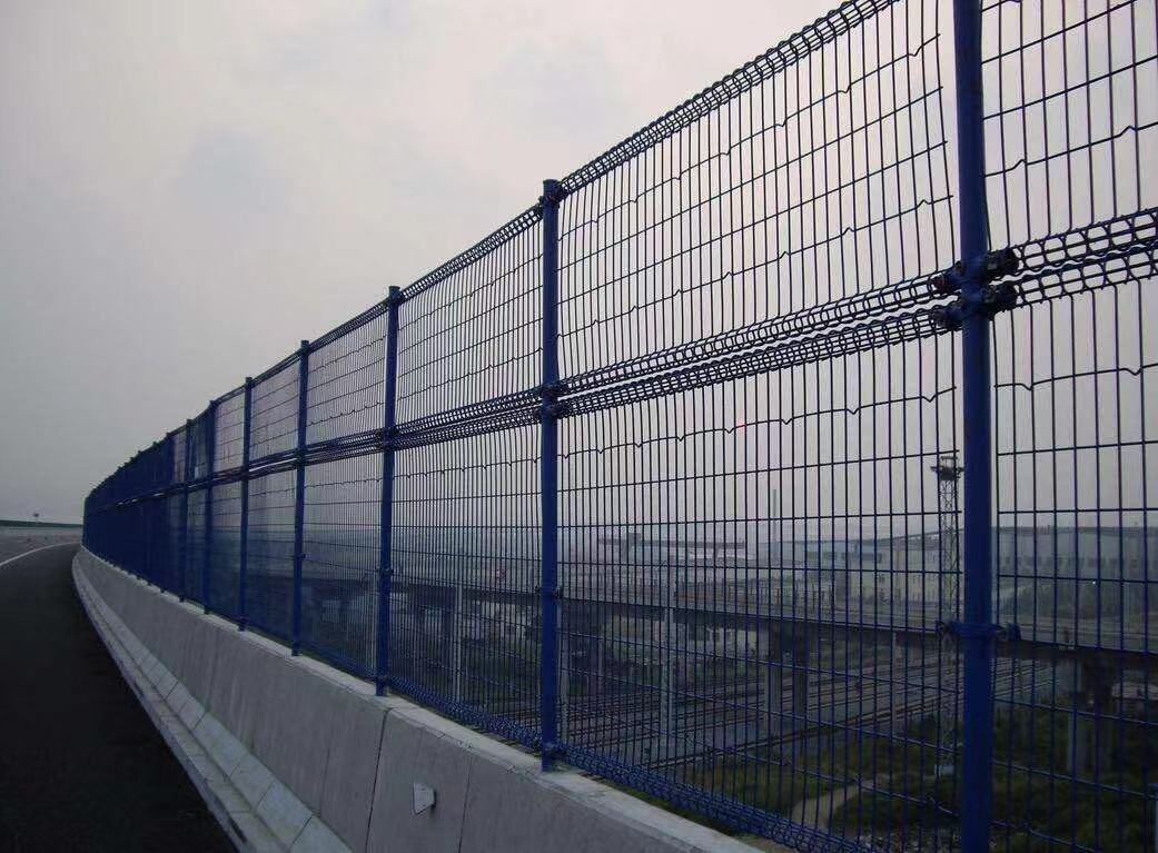 橋梁防落物網雙圈樣式的,雙圈護欄網是用冷拔低碳鋼絲焊接成網筒狀卷邊與網面一體,采用鍍鋅進行防腐處理,具有很強的耐腐蝕性,然后進行噴、浸塑,各種顏色的噴、浸塑;后連接附件與鋼管支柱固定。