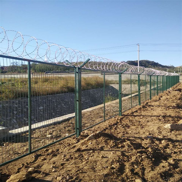 ·防挖處理∶對金屬隔離網墻正下方地面按照2000mm (長)×500mm(深)×100mm(厚)規格用混凝土進行澆注硬化或在正下方垂直預埋規格為2000mm(長)x500mm(深)×100mm(厚)的預制板,以防罪犯挖洞進入警戒區域。