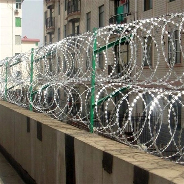 刀刺網材質為熱鍍鋅,不銹鋼304。現在監獄逐漸淘汰了熱鍍鋅刀刺網,選用不銹鋼304材質,解除了兩年一銹三年一換的后顧之憂。