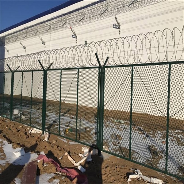 監獄隔離網網片上懸掛刀片刺網采用鋼板沖壓成型包附于鋼絲(筋絲)之上,由銳利尖角鍍鋅鋼板或不銹鋼薄板做刀片,高張力鋼絲做芯線組合而成的。鋒利的刀型刺由雙線扣裝后成蛇腹狀,既美觀又讓人不寒而粟。起到了很好的阻嚇作用。