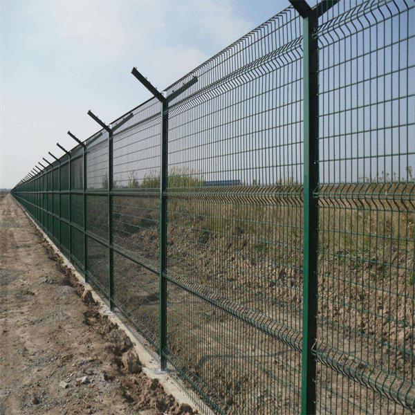 機場護欄網一般選用低碳鋼絲編制焊接加浸塑的防腐處理而組成,具有美觀、實用、方便運輸和安裝的特點。機場護欄網最簡單的樣式就是直接浸塑網片和浸塑立柱連接,省去了邊框,更節省了材料,所以價格相對來說偏低一些,只是網片加了三道折彎,在整體成本增加不多的同時,使網面強度和美感顯著提升。