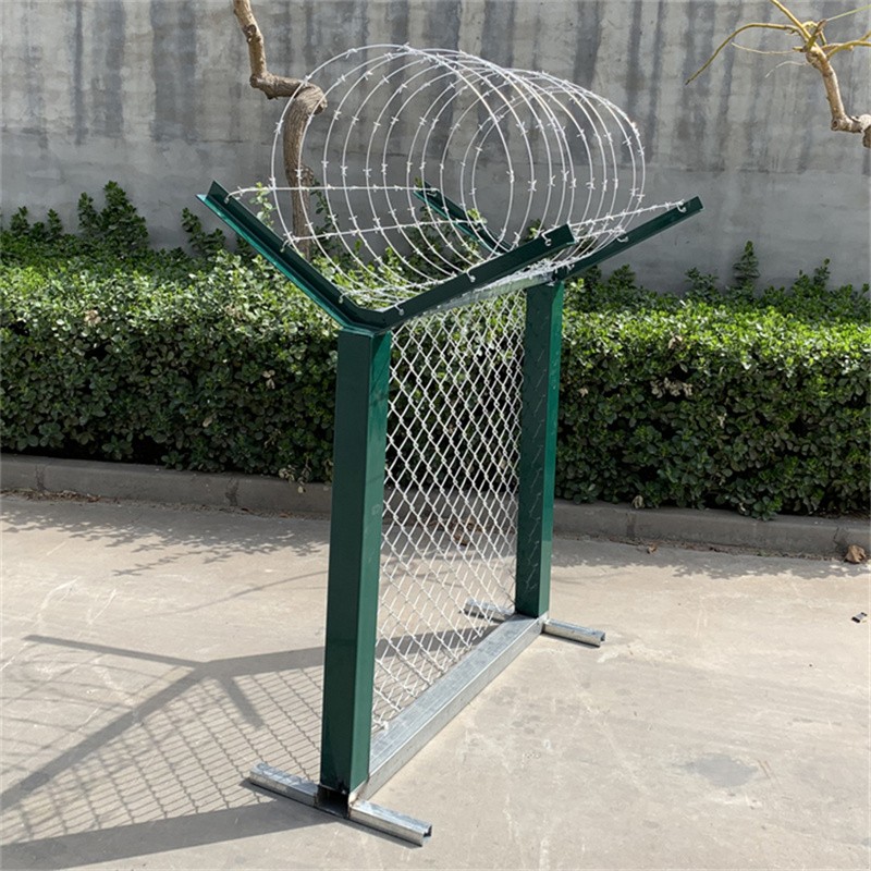 鋁包鋼絲機(jī)場(chǎng)圍界網(wǎng)是使用一種新型原材料鋁包鋼絲制作而成的機(jī)場(chǎng)圍界網(wǎng)產(chǎn)品,鋁包鋼絲是將鋼絲芯線外層包裹一層鋁作為外層防腐材料,它比傳統(tǒng)的PE或者PVC包塑鋼絲防腐性能更強(qiáng),通常可以延長機(jī)場(chǎng)圍界產(chǎn)品使用壽命10-15年以上,適合于沿海空氣濕潤腐蝕性強(qiáng)的地區(qū)和環(huán)境較惡劣的沙漠邊緣地帶。鋁包鋼絲機(jī)場(chǎng)圍界網(wǎng)孔一般為50*50mm,絲徑5mm,頂部可搭配有V字叉和刀刺滾籠以加強(qiáng)防護(hù)能力。鋁包鋼圍界網(wǎng)特殊優(yōu)點(diǎn)就是鋁層是與鋼絲一起經(jīng)機(jī)械拉拔到一起的,不易脫落。