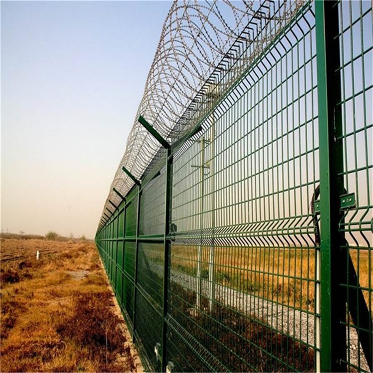 機場護欄網的顏色常用的是綠色的,深綠色或墨綠色,也有根據周邊機場設施的顏色相協調一致,格調一致,選用相應的顏色的,比如藍色或藍白色的機場護欄,或者黑色、黃顏色等。