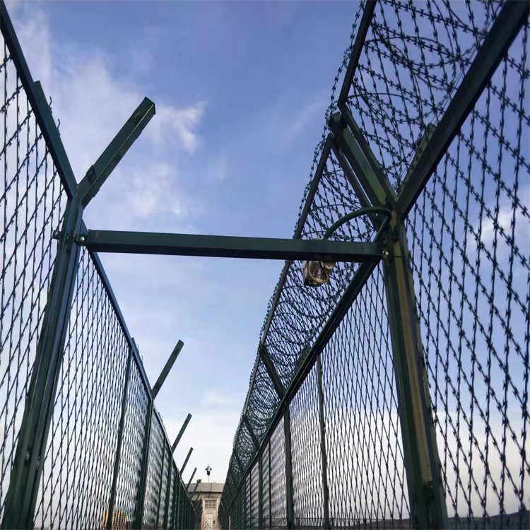 監獄看守所防逃隔離網的參數:立柱:80*80*2.5mm(塑后);邊框:30*50*1.5mm(塑后);網片:2.5-4*3米;網孔:50*50mm 50*100mm 75*150mm;底盤:150*150*8mm;表面處理:浸塑 噴塑 鍍鋅處理;刀刺:500mm圈徑蛇腹型刀刺網。