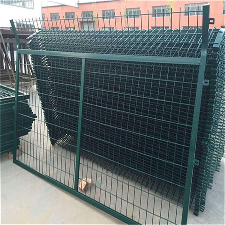 連接板的精度要求:長度誤差≤1.0mm,寬度誤差≤0.5mm,厚度誤差≤0.5mm,孔眼位置偏差≤1.0mm。金屬網片及柵欄門的網片成形后應整體鍍鋅并進行熱浸塑(或噴塑)處理,鍍鋅量70g/m2,浸塑厚度0.8mm~1.2mm,噴塑顏色選用墨綠色。涂層應均勻,顏色一致,表面光滑,無流柱,滴瘤、粉泡、漏鐵等缺陷。