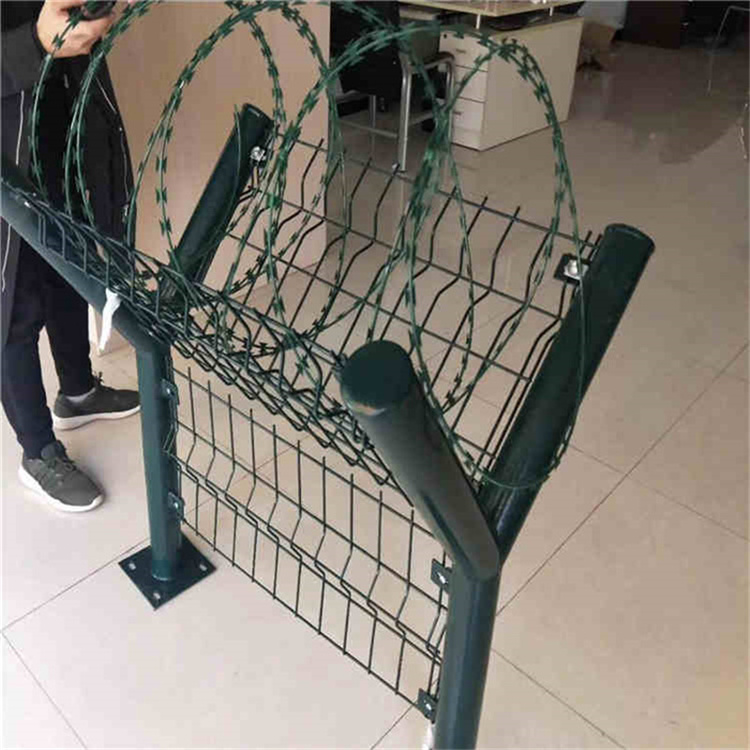 機(jī)場圍界網(wǎng)也叫機(jī)場鋼絲護(hù)欄網(wǎng)、機(jī)場隔離網(wǎng)等,從用料到表面處理到運(yùn)輸在到安裝要求都的嚴(yán)格。機(jī)場圍界網(wǎng)是一種高安全隔離防護(hù)網(wǎng),這種新型隔離網(wǎng)一般由鋼筋焊接網(wǎng)、Y型防護(hù)立柱以及蛇腹式刀刺網(wǎng)等幾大主體組成。既有良好的通透性,又能起到強(qiáng)有力的安全隔離防護(hù)效果。頂部加裝刀刺網(wǎng),鋒利的刀型,有效制止的攀爬行為,強(qiáng)有力的發(fā)揮著保護(hù)機(jī)場作用。