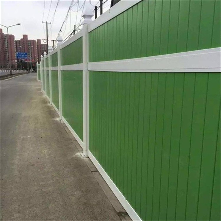 施工圍擋是指為了將建設施工現場與外部環境隔離開來,使施工現場成為一個相對封閉的空間所采取的措施,包括采用各種砌體材料砌筑的圍墻、采用各種成型板材構成的維護體等。規格分別為:籃板28.5×22mmPVC扣板;立柱120×120PVC管,橫管50×80PVC管,立柱內襯100×100×1.5鋼管,橫管內襯40×40×1.0鋼管,法蘭盤100×150×6mm。立柱鋼管底部焊接法蘭盤,目前常用規格為2.5×3.0m