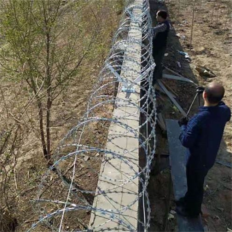 刺絲滾籠的可用之處直條型刀片刺繩產品還具有防腐、抗曬、耐候等特點,所以它能夠用來制作電泳圍欄直條型刀片刺繩,直條型刀片刺繩制作這種圍欄在防護上能達到較高的優勢性。對于直條型刀片刺繩,由于形狀為直條狀,所以包裝方法為全體直條包裝,外面用防潮紙進行綁,運輸上也只能直條形式運輸,無法壓縮。