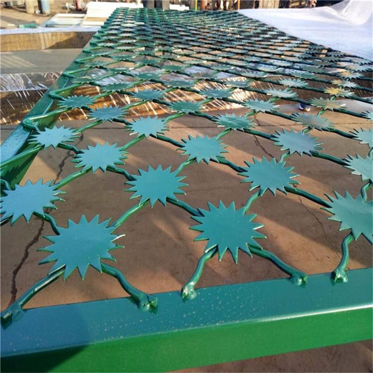 太陽花刺隔離網(wǎng),其產(chǎn)品結(jié)構(gòu)威懾效果非常好,每一個(gè)格子之間都均布刺片,達(dá)到防止手攀腳蹬的效果。目前在監(jiān)獄、看守所等系統(tǒng)中常用,可以用在警戒區(qū)、監(jiān)舍監(jiān)區(qū)隔離網(wǎng)、車行通道、AB大門等地方,除此之外,還可以用在油庫、安全防護(hù)隔離區(qū)域等,以及看守所、戒毒所、少管所等這些地方,目前使用這種具有威懾性的隔離網(wǎng)產(chǎn)品比較多,應(yīng)用范圍非常的廣泛。