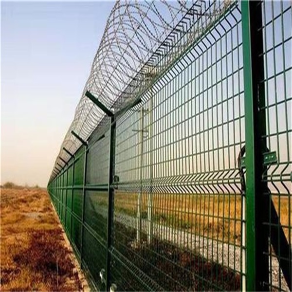 機場圍界網(wǎng)由V形支撐柱、鋼筋焊接網(wǎng)、安全防盜連接器和熱鍍鋅刀片刺繩組成。近年來,它已廣泛應用于機場和軍事基地等高度安全的地方。