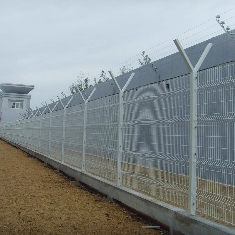 所謂監獄圍墻加高網,是指在現有的混凝土圍墻上面安裝圍欄網的意思。因為,現有的圍墻高度不能滿足需要。所以需要增加高度,用以防止攀爬或者翻越。而用于加高網的立柱則一般為法蘭盤立柱,采用膨脹螺絲固定的方式。網片則更多采用雙邊護欄網、框架護欄網和三角折彎護欄網的樣式。網孔和鐵絲直徑則根據需求者的用途訂制。