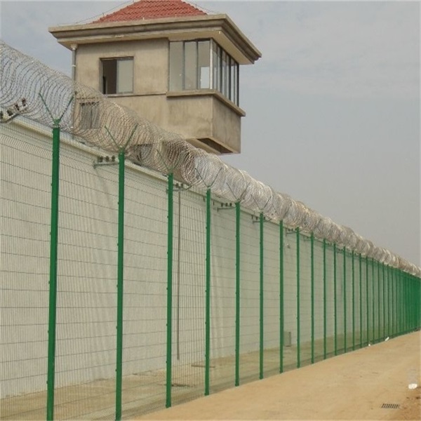 監(jiān)獄副警戒線防攀越式隔離網(wǎng)的質(zhì)量要求:在監(jiān)獄內(nèi)距離獄墻3-5m處設(shè)置防攀越式隔離網(wǎng)和警戒標(biāo)志,防止罪犯接近獄墻;采用立式Y式型柱、鋼絲網(wǎng)加蛇腹型刀刺網(wǎng)。總體質(zhì)量要求:協(xié)調(diào)、美觀、堅(jiān)固、安全。