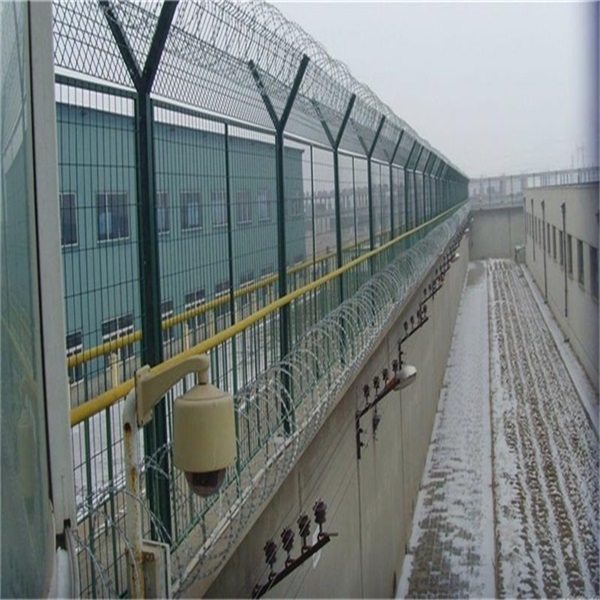 2:監獄鋼網墻用在放風場 警戒線內就需要做成2.5-5m左右的高度。上部加Y型柱,有效防止犯人的逃脫,因為上部會安裝刀片刺繩,對人也起到恐嚇的作用。其他特殊規格均可定做。我們會為您提供最好的使用方案。