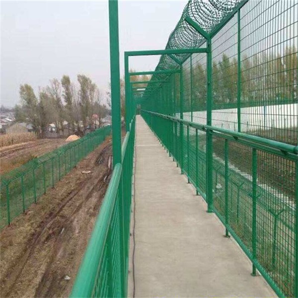 看守所巡邏道鋼網墻原材料選材嚴格,使用高純度鋼材,所需的熱鍍鋅鋼絲或鋼絲焊接后鍍鋅再做噴塑處理,達到雙重防腐;立柱要絕對保證其厚度和堅固性。 巡邏道鋼網墻栓采用防拆卸螺栓,這種螺栓只有用專用配套工具,才能拆裝,從而使網片達到防拆卸的目的。本產品整體設計高大、美觀、實用,網墻的設計具剪切、防攀爬功能,能夠十分有效的防止罪犯的潛逃。 看守所巡邏道鋼網墻V型架頂端安裝刀片刺網,直徑采用50cm-60cm刀片刺網主要是由熱鍍鋅鋼板或不銹鋼薄板沖壓而成的,它擁有尖銳的刀片,高張力鍍鋅鋼絲或者不銹鋼絲做芯線組合而成的產品。