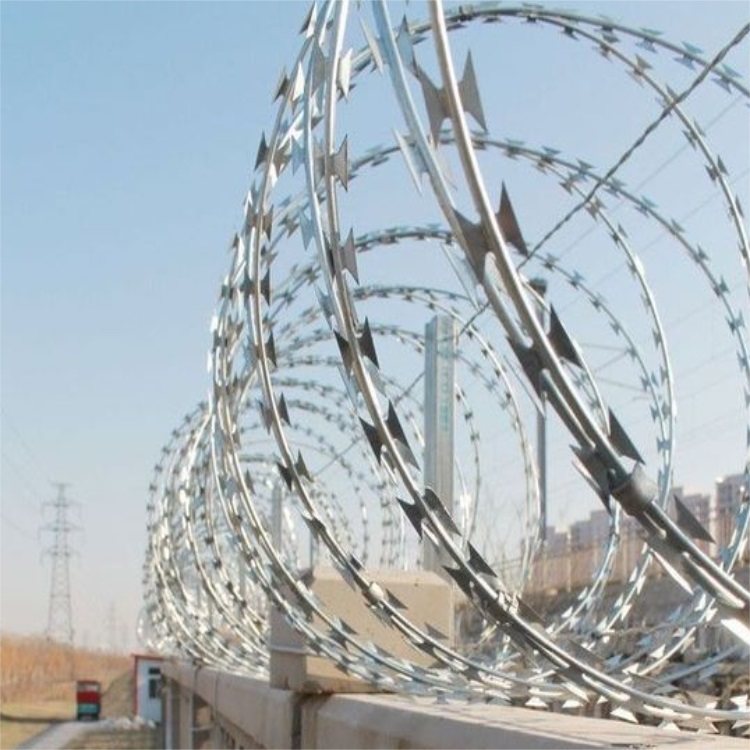 鍍鋅不銹鋼刀片刺網圍墻防爬刀片刺繩 刀片刺網 是一種近年起來的防護,隔離能力比較強的防護產品,采用優質鋼片沖壓尖刺包裹高強度鋼絲壓...的拉伸,不要過度拉伸,不然會影響防護效果,當然刀片刺網的拉伸間距與刺網直徑有很大的關系,通常來講刺繩的直徑越大能拉開的間距也就越大。 [ 查看詳情 ]