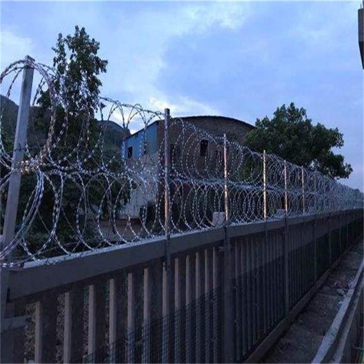 刺絲滾籠如何做好防銹才能使用更長久 監獄刀片刺繩 刀片刺繩廠家 防護刀刺網是 刀片刺繩 生產出來以后,要進行防銹處理所產生的。噴塑表...,因而能達到極好的防護隔離效果。產品的主要材質有鍍鋅板、不銹鋼板、優質的低碳鋼絲(電鍍鋅,熱鍍鋅,涂塑,噴塑)絲,有藍、綠、黃等顏色。 [ 查看詳情 ]