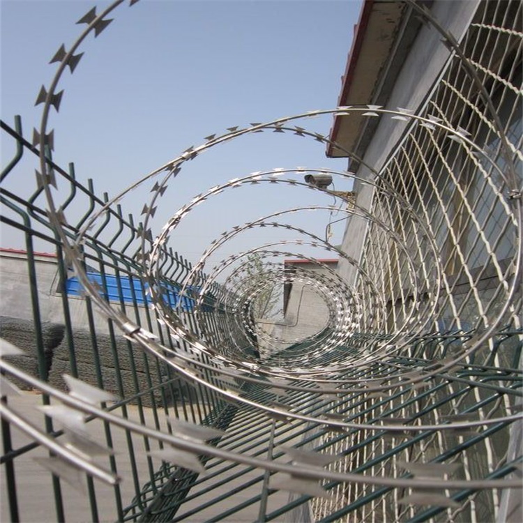 螺旋交叉式刀片刺繩 是相鄰的兩圈刀片刺繩交錯用卡扣連接到一起...、監獄、政府機關、銀行,以及生活小區圍墻、私人住宅、別墅的圍墻、門窗、高速公路、鐵路護欄以及邊境線等用來防護保安。 [ 查看詳情 ]