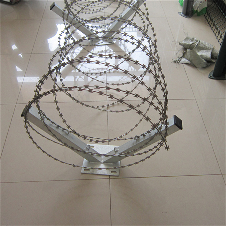 圍墻刀片刺網 在設計安裝的過程中,我們強烈建議用V型支架固定, 刀片刺繩在使用過程中,多數時候都是搭...p; 用扁鐵條貼墻上或墻側固定,也是便捷實惠的安裝方式,節約成本,可考慮安裝方法。 [ 查看詳情 ]