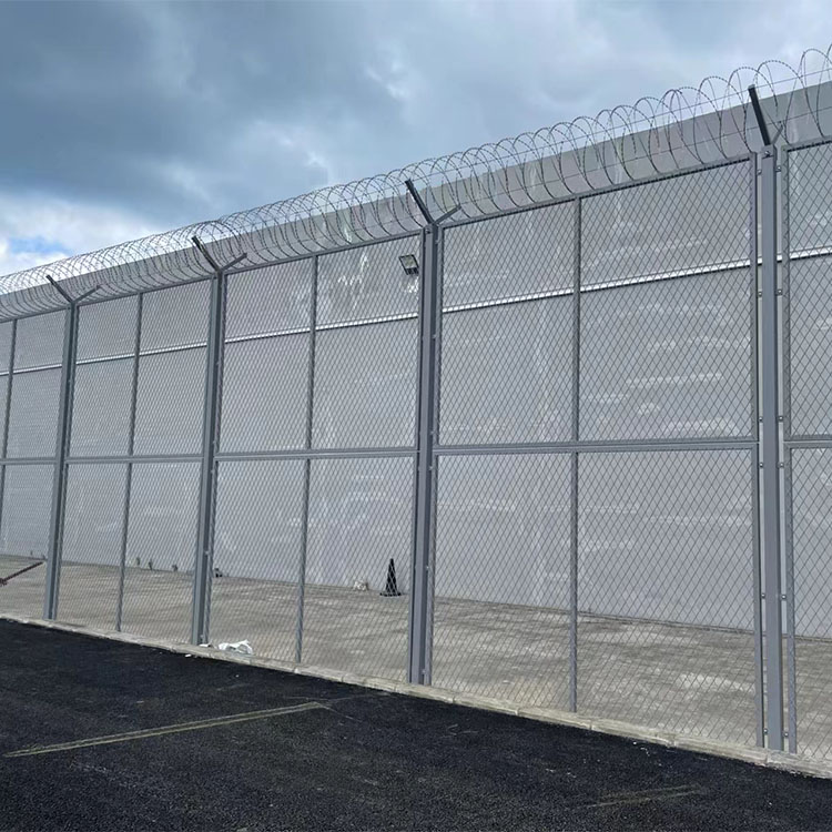 監獄鋼網墻、監區隔離網、內外監墻加高隔離網的適用場所及特點: 監獄鋼網墻、監區隔離網、 內外監墻加高隔離網 適...切、攀爬,抗腐蝕能力強,安全使用壽命長。室外環境中使用壽命可達10年以上,阻隔網構造簡練、堅固耐用、便于運輸、安裝方便,防盜功能好。 [ 查看詳情 ]