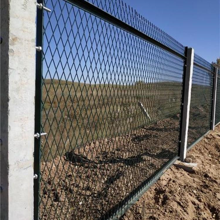 鐵路鋼板網防護網,鋼板網護欄主要由邊框和成品沖壓鋼板菱形網組成,一般鋼板網護欄的網孔主要為60x100mm網孔組成,厚度為3mmx3mm左右,網孔稍微偏大點美觀,大方,風阻小,能抵抗10級大風,鋼板網護欄一般用方管和角鐵兩種邊框焊接而成我們講的是利用角鐵焊接而成的鐵路旁邊用的鐵路隔離網,說到鐵路隔離網我們都會知道是做什么用的,防止行人以及外界隔開的圍欄網,一般角鐵采用50x50x5mm厚的角鋼作為邊框,邊框打孔利用螺絲固定連接在一起,然后平貼上鋼板網,整體焊接好之后再做表面處理,浸塑。浸塑完成后就可以正常安裝了。一般鋼板網護欄有的需要立柱,有的用水泥立柱,很多的款式可供您選擇。