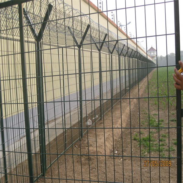 6.看守所金屬隔離網(wǎng)在施工時(shí),每間隔一定距離(通常為120米)應(yīng)將網(wǎng)墻立柱做一次雙柱分段隔離,雙柱間隙不大于10mm。網(wǎng)墻拐角處和分段處的兩根立柱應(yīng)預(yù)制連體底座,連體底座的體積應(yīng)為單體底座的兩倍。監(jiān)獄看守所隔離網(wǎng)