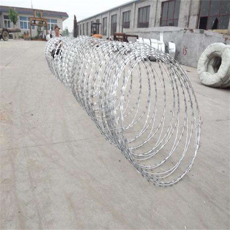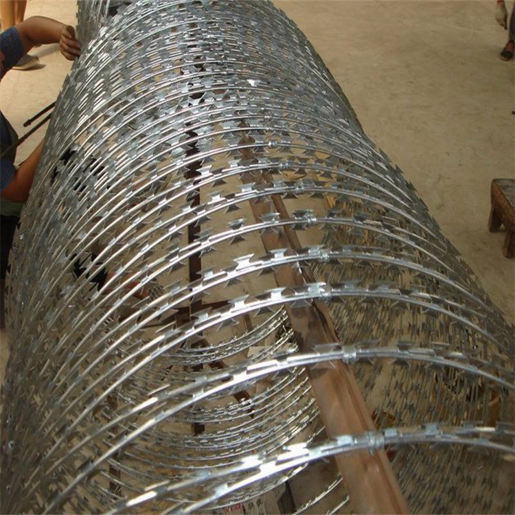 刀片刺繩規(guī)格型號(hào)為BTO-22,刀片厚度0.5±0.05,刀長(zhǎng)22±1,刀寬15±1(單位:mm),直徑為80cm,材質(zhì)為熱鍍鋅,上鋅量30g左右,刺繩拉開(kāi)后間距在20cm左右。