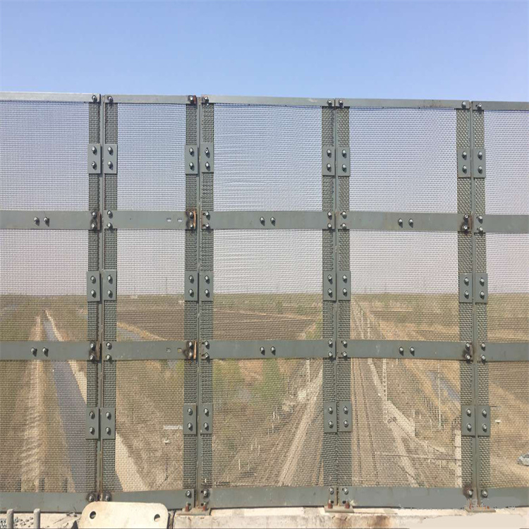 高鐵鐵路專用防拋網(wǎng)按照 標準使用3mm熱鍍鋅絲編制成正方形孔或者菱形孔,網(wǎng)孔5*5mm,箱梁橋防落網(wǎng)間距2000mm,高度2500mm,上下橫梁采用50*32*4mm角鋼各一根,中部豎撐使用50*4mm扁鐵固定,立柱規(guī)格為100*63*4.5mm工字鋼焊接160*200*12mm鋼板法蘭,法蘭孔位對應(yīng)已經(jīng)固定好的預(yù)埋螺栓緊固。金屬防拋網(wǎng)片、立柱及其他緊固件要求熱鍍鋅后靜電噴涂成墨綠色或灰色,顏色亮麗、線性美觀、整齊劃一。