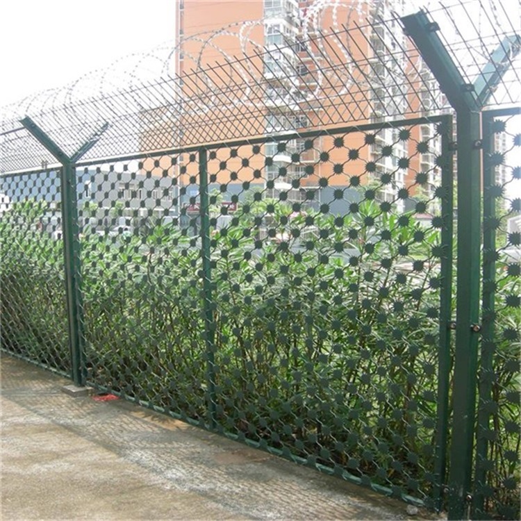 梅花刺片隔離網,經常在監獄看到,南方很多監獄內墻都是用的這種。我們北方很多是AB大門的通道使用這種梅花刺片隔離網。防攀爬防爆效果非常好,適合在這些特殊場合使用。