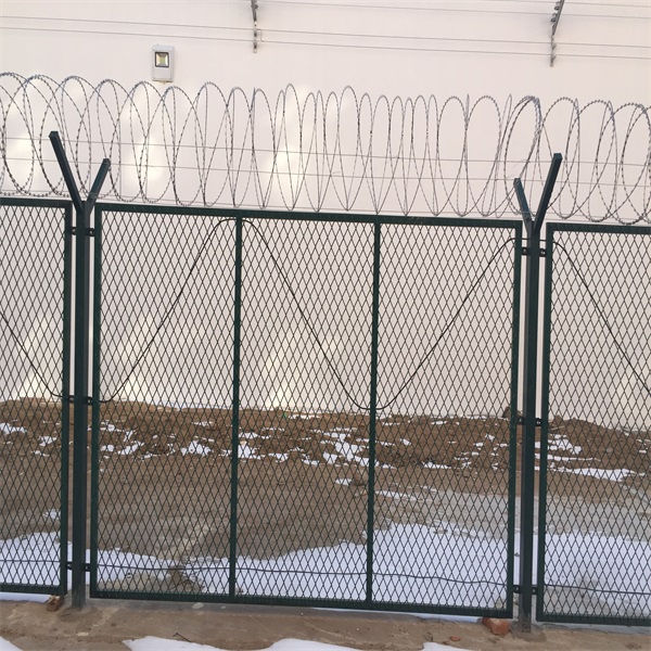 5.蛇腹式刀刺網每圈刀刺間隔100mm,每米刀刺不少于10圈。刀刺網安裝固定卡扣整體調正,使刀刺網不出現擰轉情況,刀刺刺圈分布均勻,每隔20米與拉絲固定;分段連接處需將兩端刀刺網做連接固定,刀刺網固定點需緊鎖不得 出現松動、脫落現象;刀刺網安裝與隔離網平行,上下左右均成直線延伸,轉角 處需做加密加固處理。? ????
