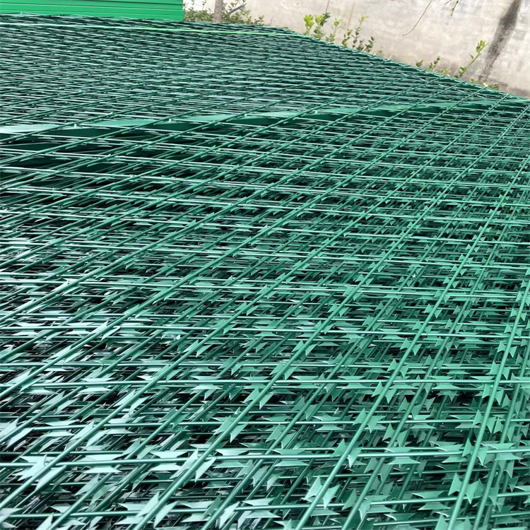 網片可更換成焊接刀刺網 , 網孔為50*100mm,75*150mm,材質常用熱鍍鋅和不銹鋼。(備注:不銹鋼刀刺網也能夠焊接到鐵框上面)