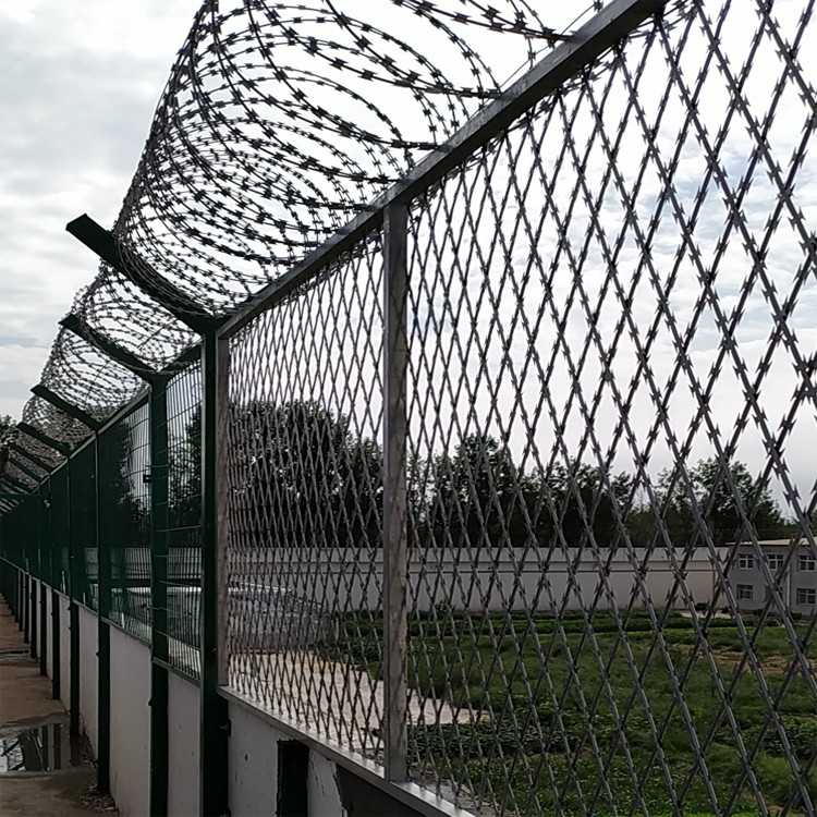 菱形刀片刺鋼網(wǎng)墻按照用途來(lái)多用于監(jiān)獄防御圍網(wǎng)的。只是從網(wǎng)片樣式來(lái)看網(wǎng)片不同:有鋼板樣式、電焊網(wǎng)片式、刀片刺式。菱形刀片刺鋼網(wǎng)墻就屬于刀片刺式。按照安裝方法不同可分為∶(蛇腹式)螺旋式刀片刺繩,直線型刀片刺繩,平板式刀片刺繩,刀片刺繩焊接網(wǎng)等。刀片刺繩大略分為螺旋型、直線型、螺旋交叉型三種形式.