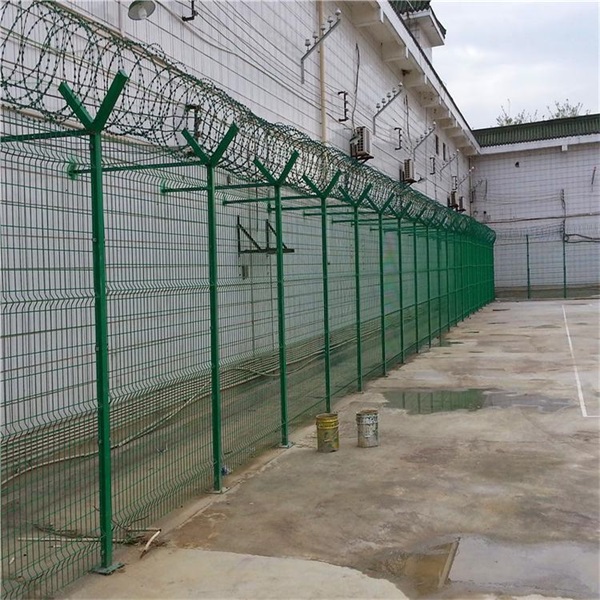 監(jiān)獄獄墻隔離網(wǎng)主要是采用高強(qiáng)度的刀片刺網(wǎng)與普通防護(hù)網(wǎng)的結(jié)合,由v型支架立拄,加強(qiáng)型焊接片網(wǎng),安全防盜連接件和刀片刺網(wǎng)組成.刀片刺網(wǎng)是一種新型防護(hù)網(wǎng),由銳利尖角鍍鋅鋼板或不銹鋼薄板做刀片,鋼絲做芯線組合而成的防護(hù)器材.是由v型支架立柱,加強(qiáng)型焊接片網(wǎng),安全防盜連接件和熱鍍鋅刀片刺籠組成強(qiáng)度和安全防御性級(jí)別很高。近年來(lái),被廣泛應(yīng)用在監(jiān)獄,軍事基地等高安全場(chǎng)所。