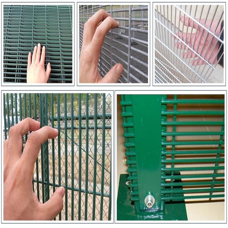 監獄密紋防攀爬網采用358密紋網制作,因此又稱為358護欄,358防爬網,是目前護欄防護中非常受歡迎的一種護欄類型,因其孔小,能很大程度上防止人或工具攀爬。主要應用于軍事、機場、安全部隊、監獄、輕軌、城際列車等的重要隔離措施。